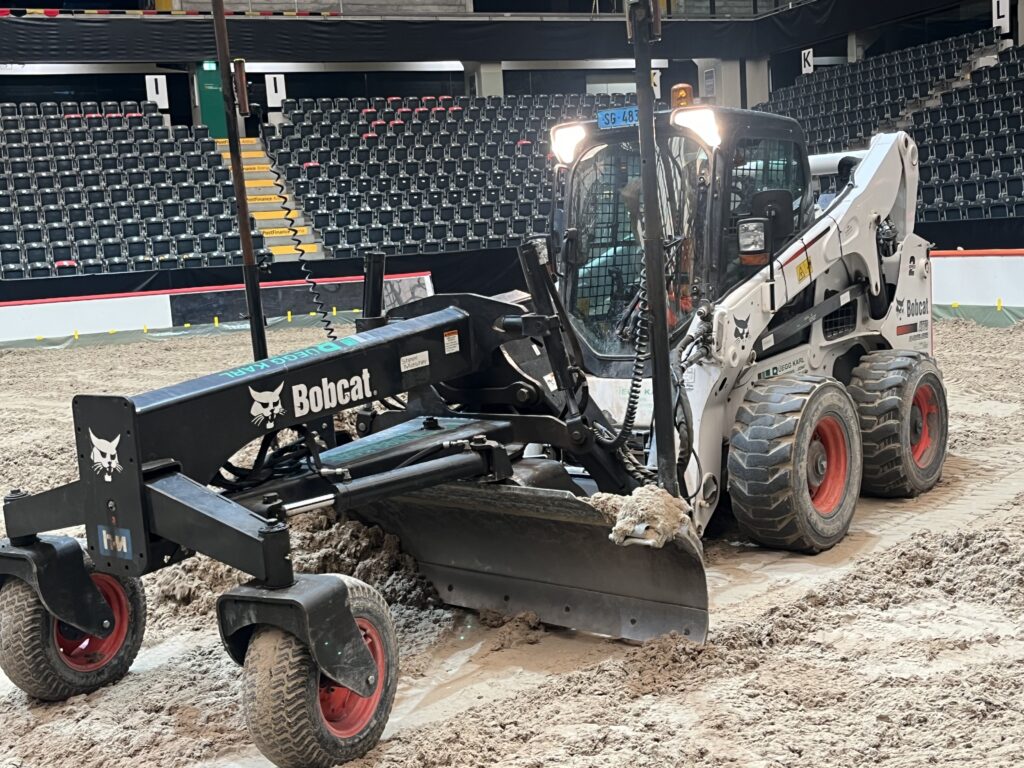 Platzpflege: Ausplanieren der Tretschicht durch gezielten Maschineneinsatz.