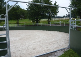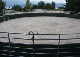 Um eine gute Tritt- und Scherfestigkeit bei Longierplätzen zu gewährleisten, verwenden wir eine spezielle Longiertretschicht. Der Bodenaufbau erfolgt mit Reitmatten und Lava und bietet somit eine optimale Entwässerung und Rutschfestigkeit des Longierplatzes.